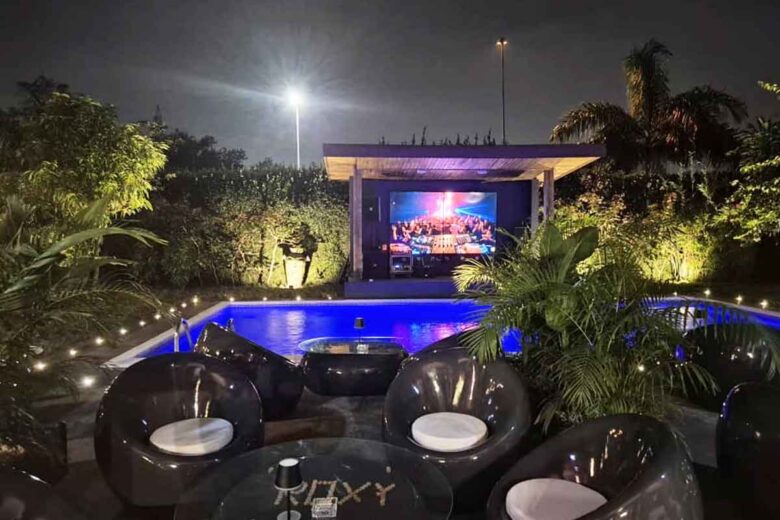 Ouvert en 2023, le restaurant Roxy Lounge est installé dans un cadre feutré à Cocody Vallons, avec un grand jardin et une magnifique piscine.